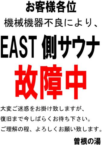 現在、EASTサウナ機械機器故障により